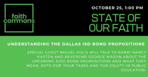 From FAITH IN TEXAS: Join us for the Road to Liberation Launch Event in partnership with our friends at Faith Forward Dallas, Faith Commons, Raise Your Voice, and Elev8 Movement. At the launch, we will share our faith-centered analysis of how policing and mass incarceration have been rooted in this lie, and how people from all races, faiths, […]